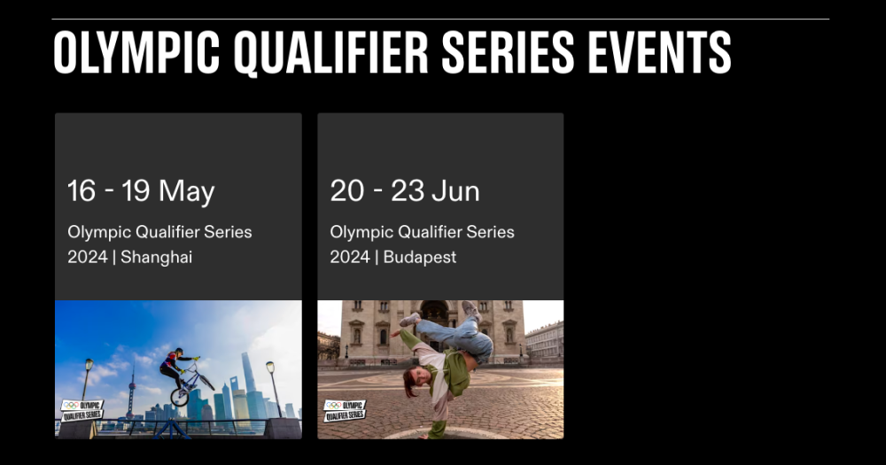 中國(guó)上海和匈牙利布達(dá)佩斯被選為這一全新賽事的舉辦城市,其中上海站將于2024年5月16日至19日舉辦,布達(dá)佩斯站將于6月20日至23日舉辦,包括自由式小輪車、霹靂舞、滑板和攀巖四個(gè)項(xiàng)目的奧運(yùn)資格賽。