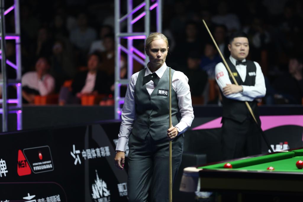 2022年女子斯諾克世錦賽冠軍、泰國選手旺哈魯泰當日表現(xiàn)不俗,在1:4落后的情況連追兩局。不過奧沙利文技高一籌,還是以6:3獲勝。丁俊暉則以6:0完勝39歲的英格蘭女子名將埃文斯。丁俊暉賽后表示自己手感還可以,有些慢熱,很多球在適應中。