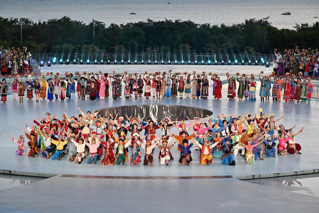 這是11月26日拍攝的聯(lián)歡晚會現(xiàn)場。當(dāng)日,第十二屆全國少數(shù)民族傳統(tǒng)體育運動會民族大聯(lián)歡活動在海南省三亞市舉行。新華社記者 郭程 攝