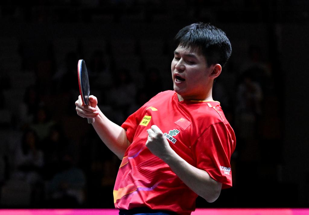 5月21日,孫穎莎在比賽中回球。新華社記者 賀長山 攝 女單衛(wèi)冕冠軍孫穎莎對陣20歲的法國選手盧茨。孫穎莎以11:4拿下首局,接下來兩局在多次落后的情況下反擊,以11:6、11:6取勝;第四局她完全占據(jù)優(yōu)勢,以11:1鎖定勝局。她下一輪的對手是9號種子、韓國選手申裕斌。 孫穎莎賽后表示,在巴黎奧運會周期時曾與申裕斌多次交手,對她非常了解,她也對自己的狀態(tài)充滿信心?!拔腋杏X狀態(tài)越來越好,比賽進行到這個階段,接下來是真正去拼硬實力的比賽。我希望一場場準(zhǔn)備,最后交出一份滿意的答卷。” 世界排名第一的男單選手林詩棟當(dāng)天上午剛經(jīng)歷了一場混雙第四輪的意外失利。單打賽場,他在丟掉首局的情況下,以8:11、11:1、11:6、11:5、11:9戰(zhàn)勝世界排名第74位的瑞典選手卡爾松。他將與日本選手吉村真晴和瑞典選手卡爾伯格之間的勝者爭奪八強資格。