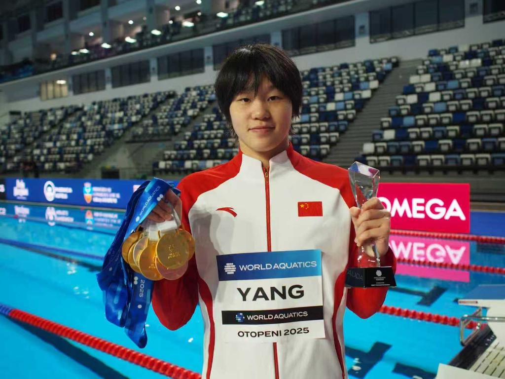 “青少年選手就要多參加比賽,尤其是像世青賽這樣的國(guó)際比賽,通過(guò)比賽認(rèn)清自己、積累經(jīng)驗(yàn),增強(qiáng)自信。我會(huì)奉獻(xiàn)自己的全部力量,助力中國(guó)游泳走好每一步,在2028年洛杉磯奧運(yùn)會(huì)展示中國(guó)速度?!迸翣柛ダ镎f(shuō)。