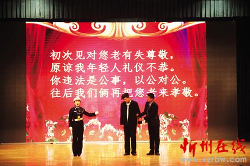 1月27日至29日,偏關(guān)縣公安局交警大隊(duì)交通安全文藝宣傳隊(duì)在隊(duì)長(zhǎng)們的帶領(lǐng)下,先后走進(jìn)市實(shí)驗(yàn)中學(xué)、市客運(yùn)中心、國(guó)家電網(wǎng)忻州供電分公司進(jìn)行了三場(chǎng)演出,用自編自導(dǎo)自演、群眾喜聞樂見的“漫翰調(diào)”、“二人臺(tái)”、北路梆子、民歌等一系列極具地域文化特色的地方小戲、說唱歌舞等曲藝形式進(jìn)行宣傳演出,贏得滿堂喝彩,場(chǎng)場(chǎng)掌聲雷動(dòng)。作為春節(jié)回家路上的一道文化盛宴,這次春節(jié)前的平安出行警示教育“送安全下鄉(xiāng)”巡演是我市公安交警精心策劃、編排的春運(yùn)交通安全宣傳行動(dòng)之一。28日,市客運(yùn)中心人頭攢動(dòng),熙熙攘攘,大廳外懸掛的橫幅標(biāo)語(yǔ)“守護(hù)您的平安出行,保障道路安全暢通是每一位交警的神圣職責(zé)!”格外醒目。候車大廳里,暖意融融,市公安局交警支隊(duì)組織的春運(yùn)交通安全文藝演出正在進(jìn)行,交警版的民間小調(diào)《拜大年》、小品《警鐘聲聲》、雙簧《二愣子》等節(jié)目令人賞心悅目、捧腹不止。在歡笑之余,提醒和教育廣大群眾自覺抵制不文明、不安全交通行為,觀看演出的旅客和客車司機(jī)紛紛感慨,這樣的宣傳教育生動(dòng)形象,人人愛看且耐人尋味,警示作用很大。