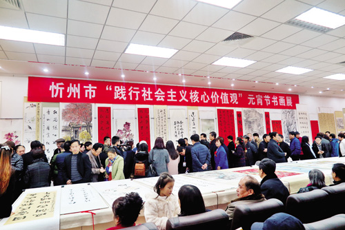 本報(bào)訊2月17日上午,由忻州市委宣傳部主辦、忻州市文聯(lián)和五臺(tái)山書畫院承辦的“忻州市‘踐行社會(huì)主義核心價(jià)值觀’元宵節(jié)書畫展”在五臺(tái)山書畫院開(kāi)展。市政協(xié)主席張明成,市委常委、宣傳部長(zhǎng)陳義青,市政協(xié)副主席賈玉文等領(lǐng)導(dǎo)與我市書畫愛(ài)好者共同觀展。