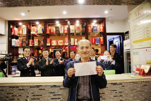 原平市王府甲魚城負(fù)責(zé)人展示開出的“1 號票”