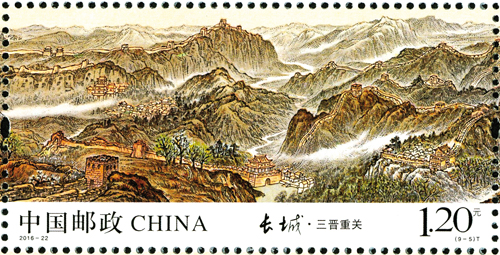 中國萬里長城是世界上修建時間最長、工程量最大的冷兵器戰(zhàn)爭時代的國家軍事性防御工程,是中華民族的古建瑰寶,凝聚著我們祖先的血汗和智慧,是中華民族的象征和驕傲。長城有極高的旅游觀光價值和歷史文化意義,是中華民族古老文化的豐碑和智慧結(jié)晶,象征著中華民族的血脈相承和民族精神。1961年,長城被列為國家級重點文物保護單位,1987年,被列為世界文化遺產(chǎn),2002年,被列為世界新七大奇跡。1984年,鄧小平、習仲勛作出“愛我中華,修我長城”的題詞,2006年,國務(wù)院頒布了《長城保護條例》。2015年,習近平總書記、李克強總理對長城保護工作作出了重要批示。今年,為紀念《長城保護條例》頒布10周年,中國郵政專門發(fā)行了《長城》特種郵票,一套九枚,分別為:關(guān)山滄海、薊遼天塹、燕趙雄風、京畿屏障、三晉重關(guān)、長河飛龍、高原北望、大漠關(guān)城、絲路古道,總面值13.2元。全套9枚郵票中,山西有兩枚長城郵票。第5枚“三晉重關(guān)”、第6枚“長河飛龍”展現(xiàn)了山西十幾處長城景點,成為全國境內(nèi)長城入選最多的省份。長城景點濃縮方寸郵票之中,姿態(tài)萬千,各具特色。郵票色彩豐富,設(shè)計精美,充分體現(xiàn)出了長城的雄偉壯觀。