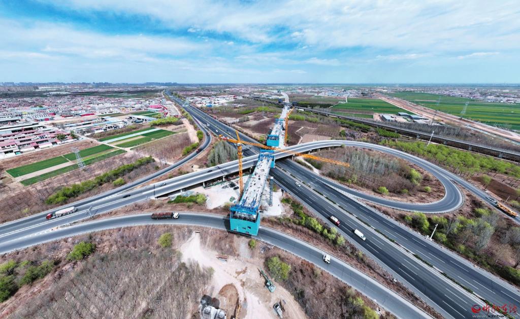 五臺山機場特大橋的建設現(xiàn)場,同樣是一派熱火朝天的景象,科技的力量在陽光下熠熠生輝。