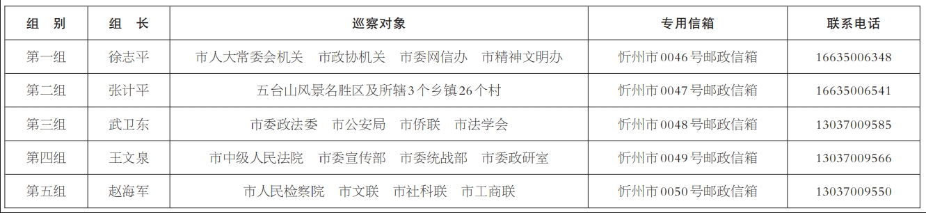 五屆市委第八輪巡察進(jìn)駐一覽表