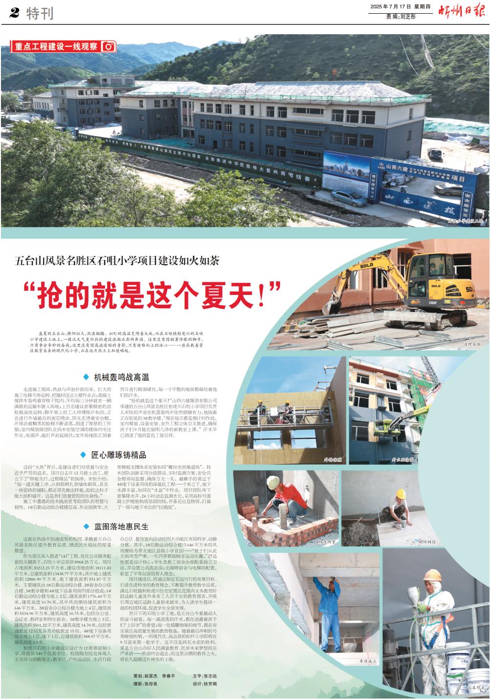 這座在熱浪中加速成型的校園,承載著五臺(tái)山風(fēng)景名勝區(qū)提升教育品質(zhì)、增進(jìn)民生福祉的厚重期望。