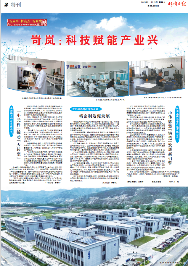 目前,公司在岢嵐縣投資0.6億元建設(shè)了新的年產(chǎn)100萬(wàn)個(gè)傳感器生產(chǎn)線,未來(lái)將進(jìn)一步提升產(chǎn)能和技術(shù)水平,助力區(qū)域經(jīng)濟(jì)轉(zhuǎn)型與新質(zhì)生產(chǎn)力發(fā)展。(康馨月 張志遠(yuǎn))