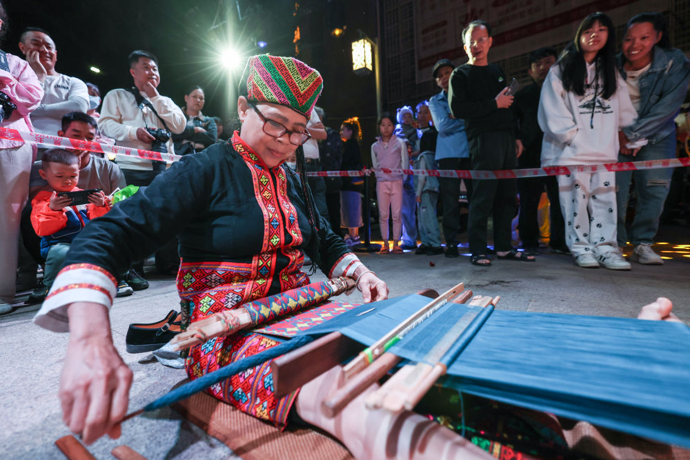 2025年3月30日,2025海南黎族苗族傳統(tǒng)節(jié)日“三月三”主會場活動在海南五指山市舉行。這是非遺傳承人在活動現(xiàn)場表演織黎錦。新華社記者 張麗蕓 攝 黎錦逐步“出圈”背后,是持之以恒的保護與傳承。 “壓兩根,提四根,這圖案叫甘工鳥……”一針一線,經(jīng)緯交錯。在黎錦非遺工坊內(nèi),黎族傳統(tǒng)紡染織繡技藝國家級代表性傳承人劉香蘭一邊介紹黎錦的制作工藝和歷史淵源,一邊指導織娘編織圖案。 多年來,非遺工坊通過開展技能培訓、產(chǎn)品設計、提供訂單式就業(yè)等方式,帶動數(shù)百名鄉(xiāng)村織娘就業(yè)增收。 劉香蘭也常年奔走于當?shù)刂行W,向孩子們傳授黎錦技藝?!拔蚁M軒痈嗳藢W習、深造黎錦技藝,讓老祖宗的文化和手藝得到更好保護傳承?!彼f。 非遺傳承,關鍵在人。黎族傳統(tǒng)紡染織繡技藝保護發(fā)展五年行動計劃出臺,“非遺項目進校園”積極推進,“黎錦學堂”設立……黎錦技藝的保護傳承和創(chuàng)新性發(fā)展進一步加強。 如今,黎族傳統(tǒng)紡染織繡技藝傳承人已發(fā)展至2萬多名,全省100多所中小學開展黎錦技藝實踐課,非遺瑰寶不斷煥發(fā)生機。 文明潤澤沃土,精神輝映征程。