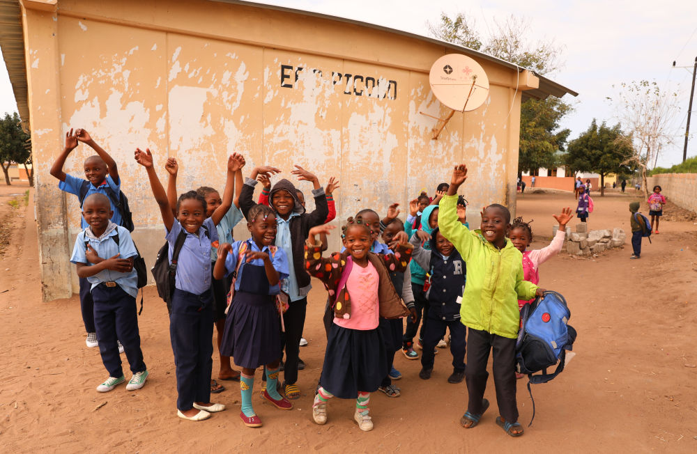 2023年7月25日,莫桑比克馬普托省皮科科村學校的孩子們站在裝有中國援助的衛(wèi)星電視接收天線的房屋前?!叭f村通”項目旨在為非洲國家的1萬個村莊接入衛(wèi)星數(shù)字電視信號,項目2018年在莫桑比克啟動,為該國1000個村落、2萬戶家庭和3000個公共場所安裝衛(wèi)星電視設備,提供電視信號和節(jié)目,覆蓋農村人口達250萬。新華社記者 董江輝 攝