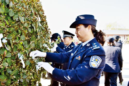 在烈士紀念碑前,大家重溫了入黨誓詞,許下莊嚴神圣的諾言,向革命烈士紀念碑敬獻花圈,集體脫帽低頭默哀,緬懷革命先烈勇于拼搏、甘于奉獻的崇高品質(zhì)。民警們參觀了烈士紀念碑,了解烈士事跡,并紛紛將胸前的小白花掛到了紀念碑旁邊的樹上,表示要牢記人民警察的神圣誓言和莊嚴使命,踐行“忠誠、為民、公正、奉獻”的人民警察核心價值觀,傳承革命烈士的精神和情懷,履行好維護社會和諧穩(wěn)定的職責,以飽滿的熱情和昂揚的斗志為公安事業(yè)貢獻自己的全部力量。(魯明強 劉慧云)