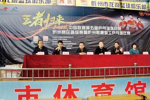 中國(guó)聯(lián)通乒乓球挑戰(zhàn)賽前期已成功舉辦四屆,全國(guó)共有72000 人參加。今年的賽事以“乒乓在沃,王者歸來(lái)”為活動(dòng)主題,攜手國(guó)乒傾情回饋熱愛(ài)運(yùn)動(dòng)的廣大聯(lián)通用戶(hù),為聯(lián)通客戶(hù)提供與國(guó)手親密互動(dòng)的專(zhuān)享契機(jī)。本屆比賽得到了中國(guó)乒乓球協(xié)會(huì)的大力支持,由中國(guó)聯(lián)合網(wǎng)絡(luò)通信有限公司山西省分公司主辦,中國(guó)聯(lián)合網(wǎng)絡(luò)通信有限公司忻州市分公司承辦,北京中廣賽博文化發(fā)展有限公司協(xié)辦。