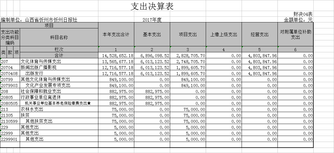 忻州日?qǐng)?bào)社不涉及政府性基金,故政府性基金決算支出為0.