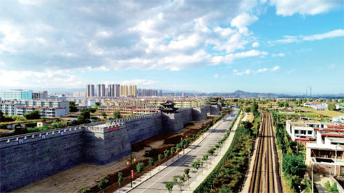 本欄圖為古城修復(fù)改造后的南城門樓、東城墻、秀容書院、泰山廟等景觀 張志遠 孫明 攝