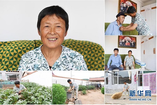 王月蘭,女,1949年出生,山西省長治市沁源縣南峪村人。因老伴劉光明身患重病,王月蘭一家于2018年被納入建檔立卡貧困戶。在健康扶貧政策的幫助下,老伴看病的巨額醫(yī)藥費用報銷比例超過80%。王月蘭說,希望老伴身體越來越好,一家的生活也越來越好。 左上:王月蘭肖像;右上:王月蘭在家中照顧老伴劉光明;右中:王月蘭(右)和老伴劉光明在家中合影;下右:王月蘭在家中打掃院子;下中:王月蘭在家里用自來水洗手;下左:王月蘭在家中管護蔬菜(拼版照片,6月20日攝)。 地處晉東南的山西省長治市,位于由太行山、太岳山環(huán)繞而成的上黨盆地中。在群山中、崖壁上,許多村莊自然條件惡劣,基礎設施落后,脫貧致富是大山深處人們的迫切心愿。 近年來,一場場脫貧攻堅戰(zhàn),在一個個深山村打響。政府全力探索脫貧路徑的同時,山區(qū)百姓因地制宜,靠自己的雙手和智慧走上致富路,交出了一份扎實的脫貧答卷。 記者在太行山、太岳山一路尋訪,記錄下多位70歲老人的生活。這些共和國的同齡人,親歷了山鄉(xiāng)的巨變,見證著長治山區(qū)脫貧攻堅偉大工程的一步步推進。 新華社記者 楊晨光 攝