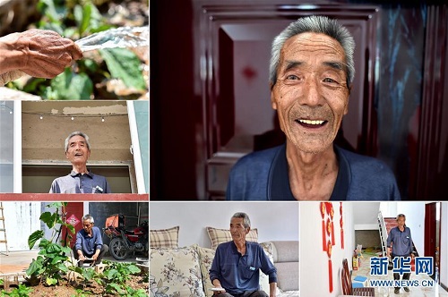 劉中秀,男,1949年出生,山西省長(zhǎng)治市潞城區(qū)西北村人,全家5口人靠種植玉米為生,收入微薄。2011年,劉中秀因一次意外而致殘,生活更加貧困。被列入建檔立卡貧困戶(hù)后,劉中秀在村干部的幫助下開(kāi)起了農(nóng)家樂(lè),他的子女參與了貧困技能培訓(xùn)并順利就業(yè)。 右上:劉中秀肖像;左上:劉中秀在給植物澆水;左中:劉中秀站在新房的二樓看向窗外;左下:劉中秀在院子里給植物澆水;下中:劉中秀在新房里看電視;下右:劉中秀在新房里(拼版照片,6月12日攝)。 地處晉東南的山西省長(zhǎng)治市,位于由太行山、太岳山環(huán)繞而成的上黨盆地中。在群山中、崖壁上,許多村莊自然條件惡劣,基礎(chǔ)設(shè)施落后,脫貧致富是大山深處人們的迫切心愿。 近年來(lái),一場(chǎng)場(chǎng)脫貧攻堅(jiān)戰(zhàn),在一個(gè)個(gè)深山村打響。政府全力探索脫貧路徑的同時(shí),山區(qū)百姓因地制宜,靠自己的雙手和智慧走上致富路,交出了一份扎實(shí)的脫貧答卷。 記者在太行山、太岳山一路尋訪(fǎng),記錄下多位70歲老人的生活。這些共和國(guó)的同齡人,親歷了山鄉(xiāng)的巨變,見(jiàn)證著長(zhǎng)治山區(qū)脫貧攻堅(jiān)偉大工程的一步步推進(jìn)。 新華社記者 曹陽(yáng) 攝