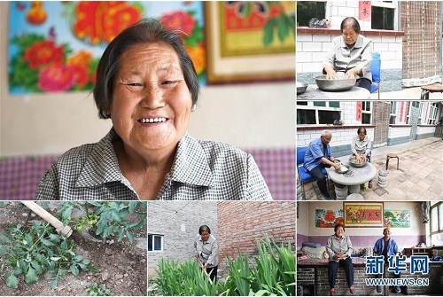 張桂香,女,1949年出生,山西省長(zhǎng)治市沁源縣西務(wù)村人。2015年,她因病被納入建檔立卡貧困戶。在當(dāng)?shù)卣婉v村工作隊(duì)調(diào)查研究后,張桂香家得以享受光伏扶貧收益資金,丈夫趙九勝也被聘用為護(hù)林員。2018年,他們家年收入超過(guò)了8000元。 左上:張桂香肖像;右上:張桂香在家里洗菜;右中:張桂香(右)和老伴趙九勝在家里洗菜;下右:張桂香(左)和老伴趙九勝在家里合影;下中、下左:張桂香在家門口的菜地里干活(拼版照片,6月20日攝)。 地處晉東南的山西省長(zhǎng)治市,位于由太行山、太岳山環(huán)繞而成的上黨盆地中。在群山中、崖壁上,許多村莊自然條件惡劣,基礎(chǔ)設(shè)施落后,脫貧致富是大山深處人們的迫切心愿。 近年來(lái),一場(chǎng)場(chǎng)脫貧攻堅(jiān)戰(zhàn),在一個(gè)個(gè)深山村打響。政府全力探索脫貧路徑的同時(shí),山區(qū)百姓因地制宜,靠自己的雙手和智慧走上致富路,交出了一份扎實(shí)的脫貧答卷。 記者在太行山、太岳山一路尋訪,記錄下多位70歲老人的生活。這些共和國(guó)的同齡人,親歷了山鄉(xiāng)的巨變,見(jiàn)證著長(zhǎng)治山區(qū)脫貧攻堅(jiān)偉大工程的一步步推進(jìn)。 新華社記者 楊晨光 攝