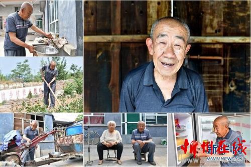 郭中其,男,1949年出生,山西省長(zhǎng)治市潞城區(qū)常村人,全家6口人靠種地為生,因家人重病而造成生活困難。被納入建檔立卡貧困戶后,郭中其家人治病的花銷顯著減少,子女參加了免費(fèi)技能培訓(xùn)并找到了工作,家里的生活條件得到了改善,2017年全家脫了貧。 右上:郭中其肖像;左上:郭中其在院子里接水;左中:郭中其在田地里鋤草;左下:郭中其在擦拭拖拉機(jī);下中:郭中其和老伴坐在院子里;下右:郭中其從冰箱里拿出西紅柿(拼版照片,6月12日攝)。 地處晉東南的山西省長(zhǎng)治市,位于由太行山、太岳山環(huán)繞而成的上黨盆地中。在群山中、崖壁上,許多村莊自然條件惡劣,基礎(chǔ)設(shè)施落后,脫貧致富是大山深處人們的迫切心愿。 近年來(lái),一場(chǎng)場(chǎng)脫貧攻堅(jiān)戰(zhàn),在一個(gè)個(gè)深山村打響。政府全力探索脫貧路徑的同時(shí),山區(qū)百姓因地制宜,靠自己的雙手和智慧走上致富路,交出了一份扎實(shí)的脫貧答卷。 記者在太行山、太岳山一路尋訪,記錄下多位70歲老人的生活。這些共和國(guó)的同齡人,親歷了山鄉(xiāng)的巨變,見證著長(zhǎng)治山區(qū)脫貧攻堅(jiān)偉大工程的一步步推進(jìn)。 新華社記者 曹陽(yáng) 攝