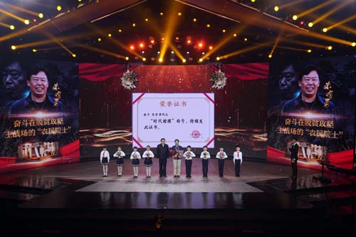 朱有勇在“時(shí)代楷?!卑l(fā)布儀式上領(lǐng)取獎(jiǎng)?wù)潞妥C書(11月29日攝)。 新華社記者 金良快 攝