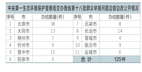 中央第一生態(tài)環(huán)境保護督察組交辦我省第十八批群眾舉報問題125件,辦結125件。公示125件,其中太原市38件、大同市13件、朔州市7件、忻州市9件、晉中市12件、陽泉市5件、呂梁市8件、長治市14件、晉城市4件、臨汾市9件、運城市6件??傻卿浬轿魇∪嗣裾W(wǎng)站或掃描二維碼查閱群眾信訪舉報轉(zhuǎn)辦和邊督邊改公開情況一覽表。