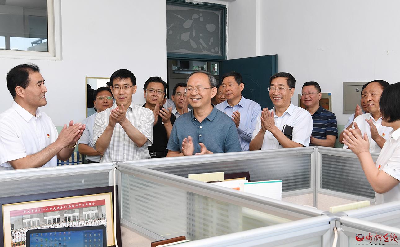 近年來,忻州一中優(yōu)生培養(yǎng)取得階段性成果,綜合辦學(xué)水平大幅提升,高考一本達線率連年在85%以上,二本達線率逼近百分之百,教育質(zhì)量享譽三晉,教學(xué)成績位列全省第一方陣,這些都離不開該校全體教師的辛勤付出。鄭連生一行詳細察看了校園環(huán)境,并到數(shù)學(xué)教研室與教師進行交流,聽取教育教學(xué)意見,詢問工作生活上的困難。鄭連生指出,百年大計,教育為本;教育大計,教師為本,教師是教育事業(yè)發(fā)展的基礎(chǔ),要高度重視并切實抓好教師隊伍建設(shè),不斷提升教師的教學(xué)水平,為教師的工作和生活創(chuàng)造便利條件。各級各部門要始終堅持教育優(yōu)先發(fā)展戰(zhàn)略,加大財政投入,加強政策支持,全面優(yōu)化教育發(fā)展環(huán)境,推動忻州教育水平再上新臺階,為我市經(jīng)濟社會發(fā)展培養(yǎng)更多人才。