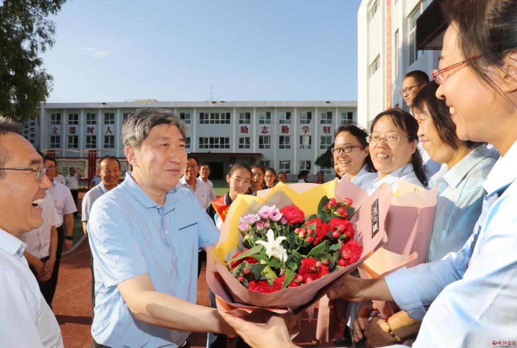 本報訊 (記者任逢春)9月7日,第36個教師節(jié)到來之際,市委副書記、市長朱曉東走訪慰問了長征小學(xué)西校區(qū)、忻州第六中學(xué)、忻州高級中學(xué)的一線教職員工,向廣大教師、教育工作者和離退休教師致以節(jié)日問候和崇高敬意。副市長安書田,市直相關(guān)部門負責(zé)人一同走訪慰問。