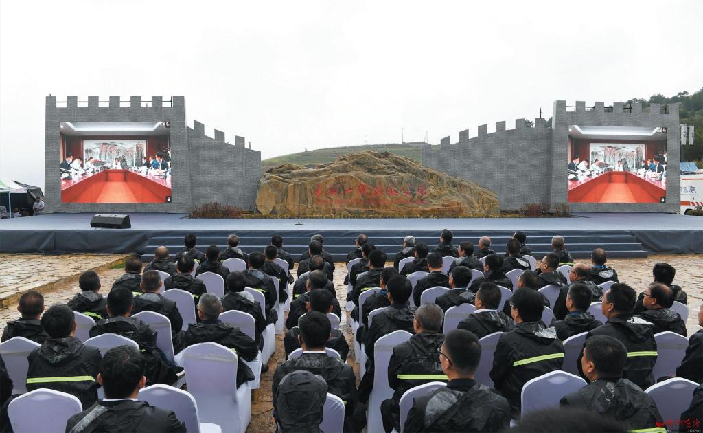 老牛灣長城一號旅游公路“0Km”標志文化驛站啟用活動現(xiàn)場。劉紀森 攝