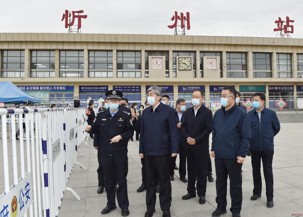 在忻州火車站調(diào)研來忻返忻人員“點(diǎn)對(duì)點(diǎn)”接返和隔離管控等工作落實(shí)情況。馮曉磊 攝