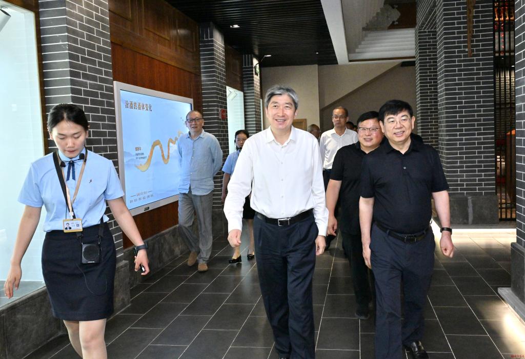 在中國汾酒城參觀考察。馮曉磊 攝 7月16日,市委書記朱曉東率隊到汾酒集團考察學習,同汾酒集團黨委書記、董事長袁清茂舉行工作會談,就進一步加強市企務(wù)實合作、推動黃酒產(chǎn)業(yè)高質(zhì)量發(fā)展進行深入交流。汾酒集團黨委專職副書記、副董事長李振寰及相關(guān)部門負責人,市領(lǐng)導張宇光、崔崢嶺、王建峰參加。 在中國汾酒城,朱曉東一行登上西城樓,俯瞰酒城全貌,聽取汾酒城的建設(shè)規(guī)模、生產(chǎn)經(jīng)營、產(chǎn)品銷售等情況介紹。隨后,朱曉東一行走進汾酒博物館,通過館陳文物、文獻史料、文人墨寶等,切身感受汾酒集團的企業(yè)文化,了解企業(yè)歷史沿革、技術(shù)創(chuàng)新及汾酒的釀造技藝等情況。 座談會上,朱曉東對汾酒集團近年來取得的突出業(yè)績表示祝賀,感謝汾酒集團對忻州黃酒產(chǎn)業(yè)的重視與支持。他說,通過近些年的潛心發(fā)展,忻州發(fā)生了日新月異的變化,全市干部群眾特別是黨政班子精神振奮,干事創(chuàng)業(yè)的熱情高漲,自豪感、自信心顯著增強。當前,隨著忻州深入貫徹落實省委省政府決策部署,加快實施“南融東進”戰(zhàn)略,連接京津冀,服務(wù)雄安新區(qū),與太原相向發(fā)展,區(qū)位、交通、資源、產(chǎn)業(yè)、環(huán)境等各方面優(yōu)勢正在不斷凸顯,忻州市迎來了最好的發(fā)展時期。汾酒作為我省乃至全國的優(yōu)質(zhì)白酒品牌,歷史悠久、底蘊深厚、品質(zhì)卓越。希望汾酒集團充分利用自身在經(jīng)營理念、運營模式、技術(shù)工藝等方面的優(yōu)勢,幫助我市黃酒企業(yè)提升發(fā)展水平與產(chǎn)品品質(zhì),助力忻州黃酒企業(yè)高質(zhì)量發(fā)展。我市相關(guān)部門及黃酒企業(yè)要進一步提高思想認識,開闊眼界視野,主動對標對表,學習借鑒汾酒集團先進經(jīng)驗做法,提升黃酒產(chǎn)業(yè)規(guī)范化、標準化、市場化水平,擦亮叫響代州黃酒金字招牌。 袁清茂代表汾酒集團對朱曉東一行的到來表示歡迎,對忻州市長期以來給予的關(guān)心與支持表示感謝。他表示,忻州市近年來經(jīng)濟社會發(fā)展成效顯著,產(chǎn)業(yè)轉(zhuǎn)型態(tài)勢強勁。汾酒集團將充分發(fā)揮專業(yè)優(yōu)勢,積極搭建平臺,在黃酒釀造工藝等領(lǐng)域深化交流合作,助推忻州乃至全省黃酒產(chǎn)業(yè)提檔升級。(張 曄) (責任編輯:盧相?。?/span> |