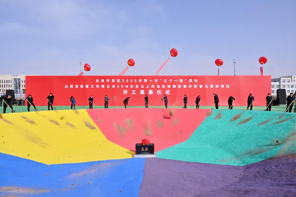 全省開發(fā)區(qū)2025年第一次“三個一批”活動山西寶航重工有限公司10MW及以上風電機組精密鍛件數(shù)智化建設(shè)項目開工奠基儀式現(xiàn)場。馮曉磊 攝