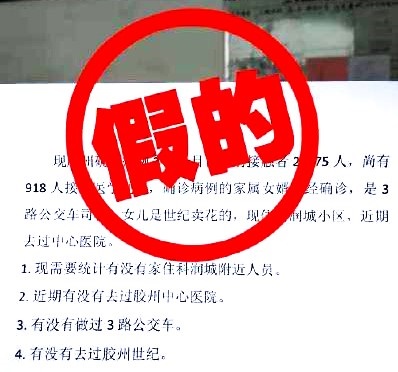 近日,有關青島新增兩名確診病例的信息在網上流傳,稱“膠州密切接觸者21375人,尚有918人接受醫(yī)學觀察”、“患者女婿是3路公交車司機!已經確診了”等。