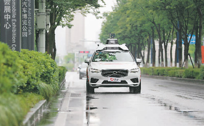 6月27日,上海啟動智能網聯(lián)汽車規(guī)?;痉稇?,一輛智能網聯(lián)汽車在路上行駛。