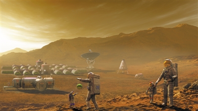 近年來(lái),世界各國(guó)建設(shè)月球基地的熱情很高,不少國(guó)家制定了計(jì)劃或提出了方案。相比月球,火星上有些條件更適合建造基地。比如,火星的自轉(zhuǎn)周期約為24小時(shí)40分鐘,跟地球差不多。同時(shí),火星上有水,有稀薄的大氣,還有一年四季。這些環(huán)境條件都跟地球很相似,讓人們看到了殖民火星的希望。