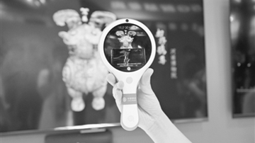 2021中國國際數(shù)字經(jīng)濟(jì)博覽會(huì)工作人員展示通過AR探索鏡掃描獲取文物相關(guān)信息 新華社記者 金皓原 攝