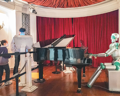 在上??萍拣^,游客觀看機(jī)器人彈琴。王 初攝(人民圖片)