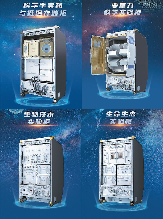 除了無(wú)容器材料實(shí)驗(yàn)柜之外,天和核心艙內(nèi)還有高微重力實(shí)驗(yàn)柜,為航天醫(yī)學(xué)分析、基礎(chǔ)物理研究等提供理想的微重力實(shí)驗(yàn)環(huán)境。問(wèn)天實(shí)驗(yàn)艙部署了生命生態(tài)實(shí)驗(yàn)柜、生物技術(shù)實(shí)驗(yàn)柜、科學(xué)手套箱與低溫存儲(chǔ)柜、變重力科學(xué)實(shí)驗(yàn)柜以及艙外暴露實(shí)驗(yàn)裝置等科學(xué)實(shí)驗(yàn)設(shè)施。夢(mèng)天實(shí)驗(yàn)艙則配置了13個(gè)標(biāo)準(zhǔn)載荷機(jī)柜,目前已裝載了超冷原子物理實(shí)驗(yàn)柜、高精度時(shí)頻實(shí)驗(yàn)柜、高溫材料科學(xué)實(shí)驗(yàn)柜、兩相系統(tǒng)實(shí)驗(yàn)柜、流體物理實(shí)驗(yàn)柜、燃燒科學(xué)實(shí)驗(yàn)柜等實(shí)驗(yàn)“神器”,主要面向微重力科學(xué)研究。