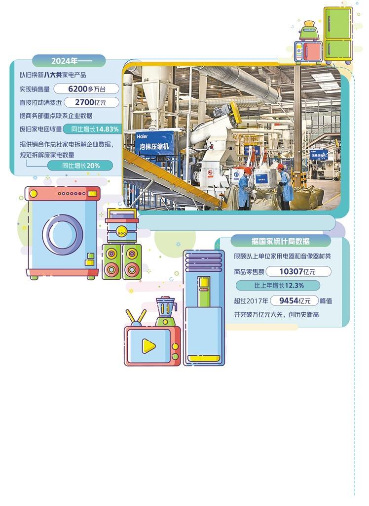 與此同時,以舊換新政策帶動回收拆解量雙增長。2024年,廢舊家電回收量同比增長14.83%,規(guī)范拆解廢家電數(shù)量同比增長20%。以舊換新后的家電去哪了?家電回收利用還有哪些待解問題?