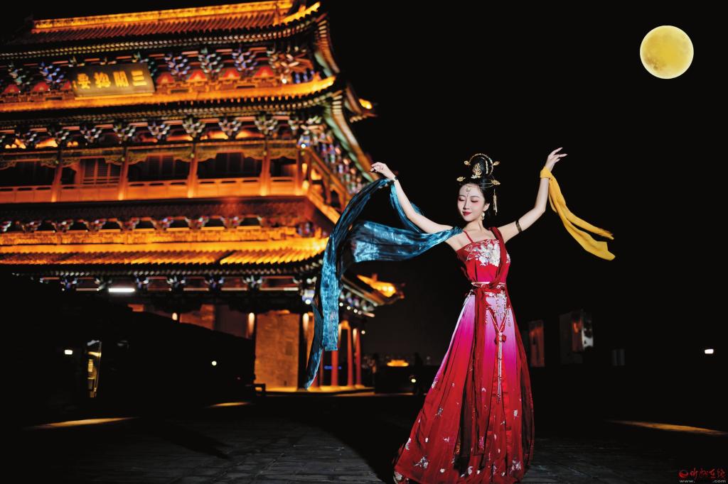 三年來(lái),每到周末或節(jié)假日晚上,忻州古城的北城樓廣場(chǎng)都會(huì)有“貂蟬拜月”的舞蹈表演。每次演出,現(xiàn)場(chǎng)觀(guān)者如云,人們摩肩接踵。扮演貂蟬的舞者隨著節(jié)奏展現(xiàn)曼妙舞姿,常常博得陣陣掌聲。這位貂蟬扮演者,就是土生土長(zhǎng)的忻州女兒——楊淵媛。
