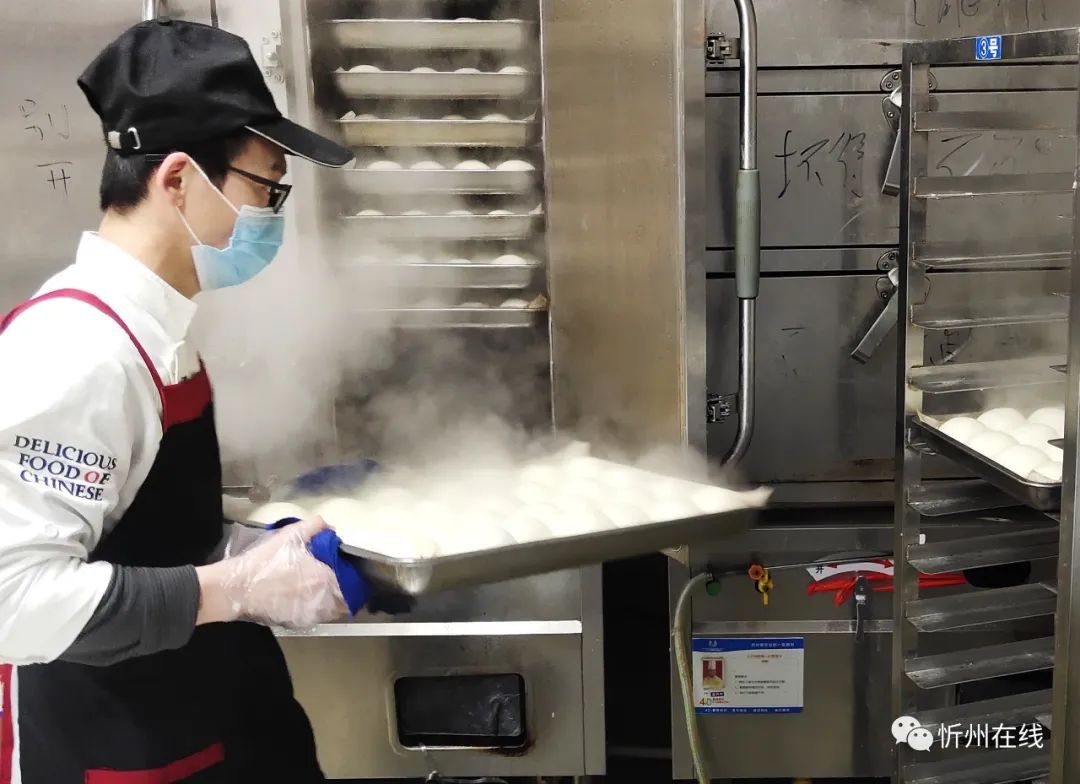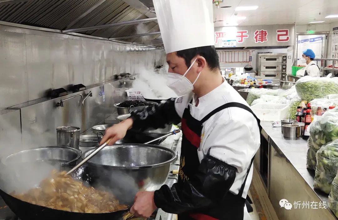紅燒肉、過油肉、涼拌菜……12月2日下午,忻州丁方文化餐飲管理有限公司的廚師們正在有序忙碌著,一道道剛出鍋的飯菜被分餐員迅速分裝、打包、裝箱,他們要趕在18點(diǎn)之前送往忻州市級(jí)方艙醫(yī)院。