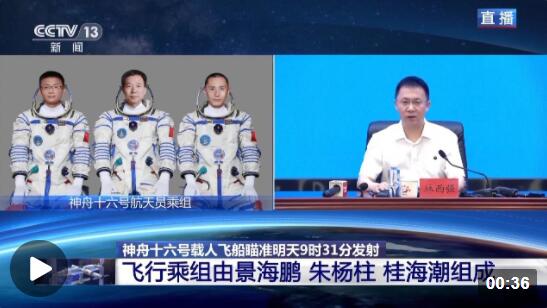 中國載人航天工程辦公室副主任林西強表示,目前,空間站組合體狀態(tài)和各項設備工作正常,神舟十六號載人飛船和長征二號F遙十六運載火箭產品質量受控,神舟十六號航天員乘組狀態(tài)良好,地面系統(tǒng)設施設備運行穩(wěn)定,發(fā)射前各項準備工作已就緒。