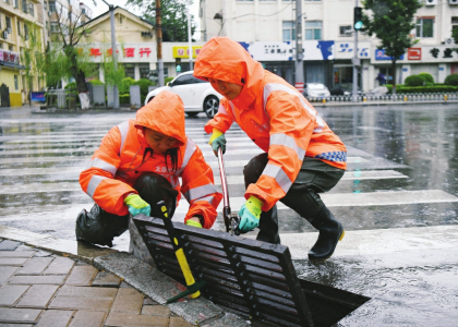 ?太原市市政公共設施建設管理中心道路排水保障二所的工作人員奮戰(zhàn)在防汛一線人員。 山西晚報記者 寇寧攝影報道