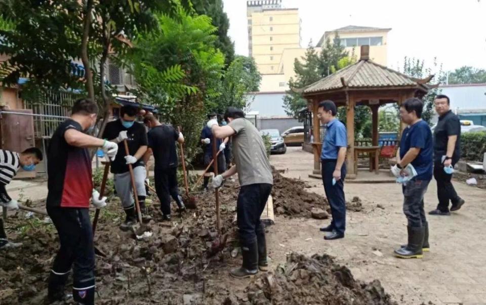 國(guó)家開發(fā)銀行鄉(xiāng)村振興部的田扶搖正和國(guó)家開發(fā)銀行的碩博志愿者隊(duì)一起,在社區(qū)清理淤泥:“大家都是利用周末時(shí)間自發(fā)前來的志愿者,有的同事還帶了家屬一起來支援災(zāi)區(qū),也都想力所能及地出一份綿薄之力?!?/p>
