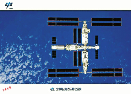 神舟十六號乘組返回地面前手持高清相機,通過飛船繞飛拍攝的空間站組合體全景照片在見面會上首次發(fā)布。這是我國首次在軌獲取以地球為背景的空間站組合體全貌圖像,也是中國空間站的第一組全構型工作照。