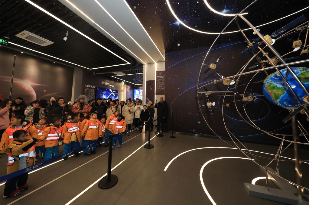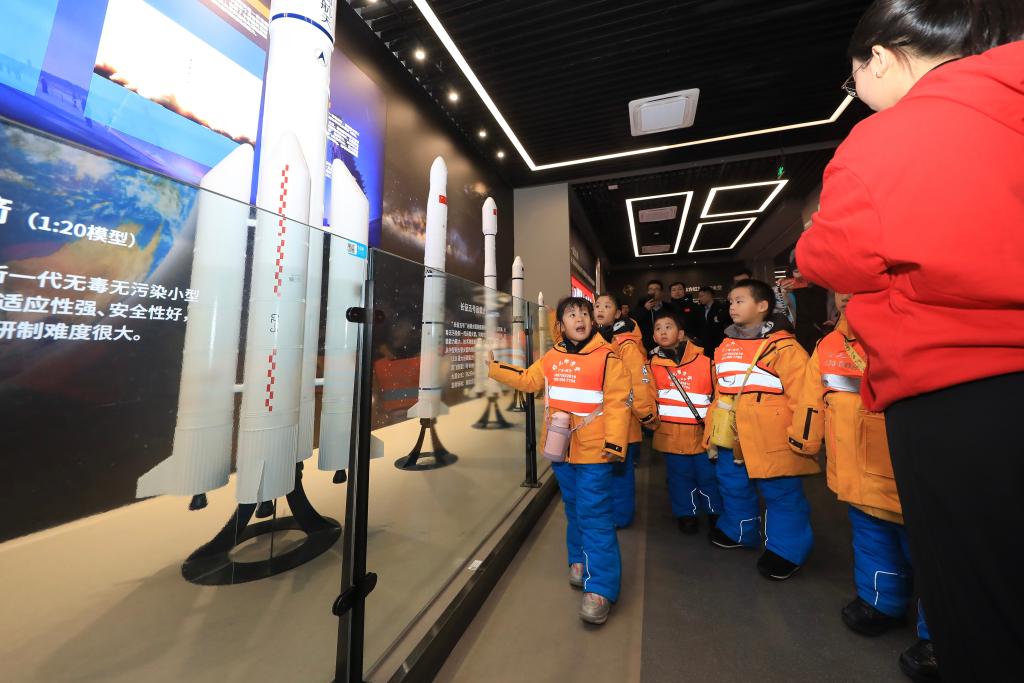 1月6日,“小砂糖橘”參觀哈爾濱工業(yè)大學航天館。新華社發(fā)