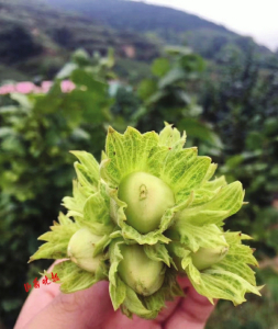 常安鄉(xiāng)龍莊溝村氣候溫潤、晝夜溫差大、光照充足,適宜大果榛子種植。2013年,瞄準(zhǔn)榛子的利好發(fā)展空間,土生土長的常安鄉(xiāng)人閆士文成立了山西榛實(shí)農(nóng)林科技開發(fā)有限公司,流轉(zhuǎn)村民300畝土地,種植大果榛子。榛子有“堅(jiān)果之王”的美譽(yù),不但果仁營養(yǎng)豐富口感好,果殼、果苞、葉片也可以用來制栲膠。榛子樹一般3-4年開始結(jié)果,7年以上進(jìn)入盛果期,壽命可達(dá)50年以上。堅(jiān)持了7年后,榛子終于進(jìn)入了盛果期??粗Ao枬M的榛子,閆士文開心不已。