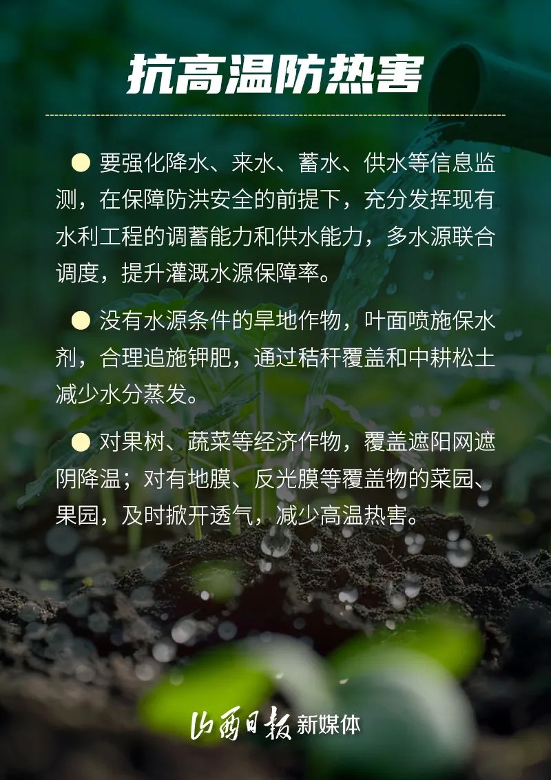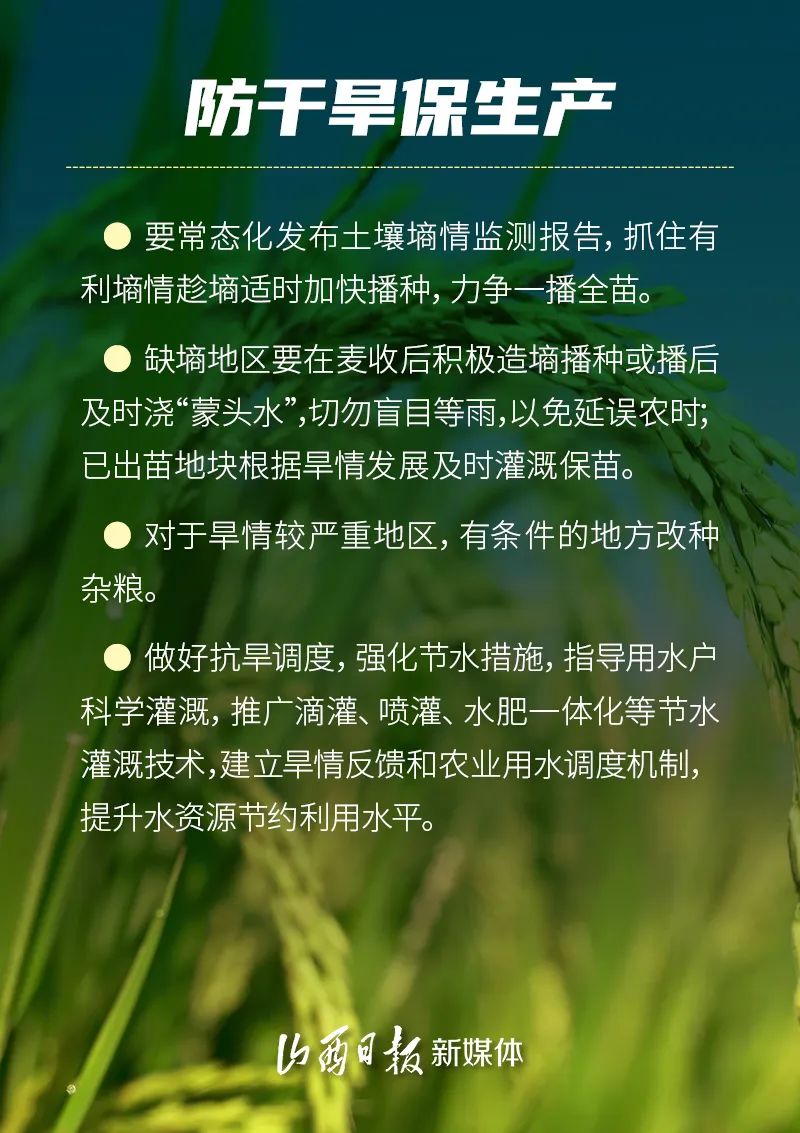 6月—8月是糧食作物生長發(fā)育和產(chǎn)量形成的關(guān)鍵期。預(yù)計今年汛期全省可能出現(xiàn)區(qū)域性極端強降水過程并引發(fā)洪澇和次生地質(zhì)災(zāi)害,未來三個月全省平均氣溫較常年同期偏高。因此,省農(nóng)業(yè)農(nóng)村廳會同省水利廳、省應(yīng)急管理廳、省氣象局制定《科學(xué)應(yīng)對旱澇等自然災(zāi)害奮力奪取秋糧和全年糧食豐收預(yù)案》,全力抓好防汛抗旱應(yīng)對工作,努力奪取全年糧食和農(nóng)業(yè)豐收。