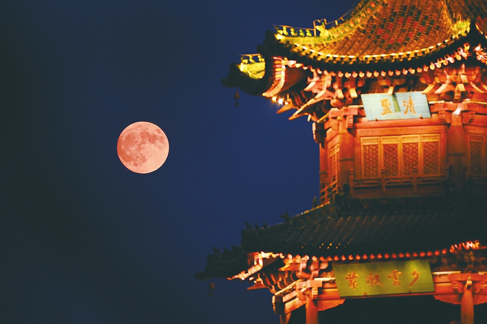 9月17日傍晚,太原迎澤公園,一輪巨大的圓月映襯著仿古建筑,詩(shī)意滿滿。當(dāng)日是中秋佳節(jié),恰好邂逅本年度最大的“超級(jí)月亮”。所謂“超級(jí)月亮”,其實(shí)是指月球在近地點(diǎn)附近時(shí),恰好是滿月的時(shí)候,這樣一來(lái),視覺(jué)上就會(huì)顯得格外巨大和明亮。據(jù)悉,今年的“超級(jí)月亮”平均每60年才會(huì)出現(xiàn)一次。