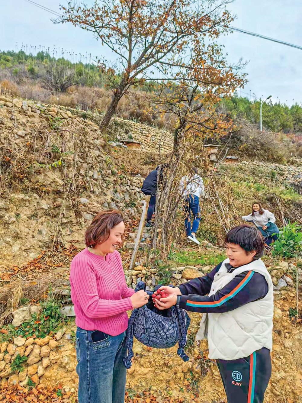 徜徉在小路上,偶遇從河南新鄉(xiāng)長垣市自駕而來的游客于女士一行人,她們正在山坡上采摘?jiǎng)倓偸焱傅纳介?。于女士告訴記者,她們這幾個(gè)鄰居經(jīng)常自駕來松廟村游玩,夏天時(shí)還常在村里小住。