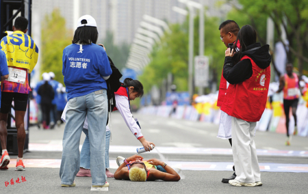 賽道內外,另一群身影同樣令人動容。志愿者們沿途遞水補給、指引方向,沙啞的嗓音里滿是熱忱;醫(yī)護人員隨身攜帶急救設備,目光緊盯著每一位跑者,隨時準備伸出援手。他們的全程守護,如同秋日里的暖陽,成為賽道上最溫暖的風景。